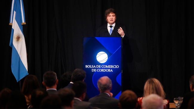 El presidente habló en la Bolsa de Comercio de Córdoba y defendió su plan económico. Se mostró junto a Adorni tras el escándalo del vuelo a Nueva York.