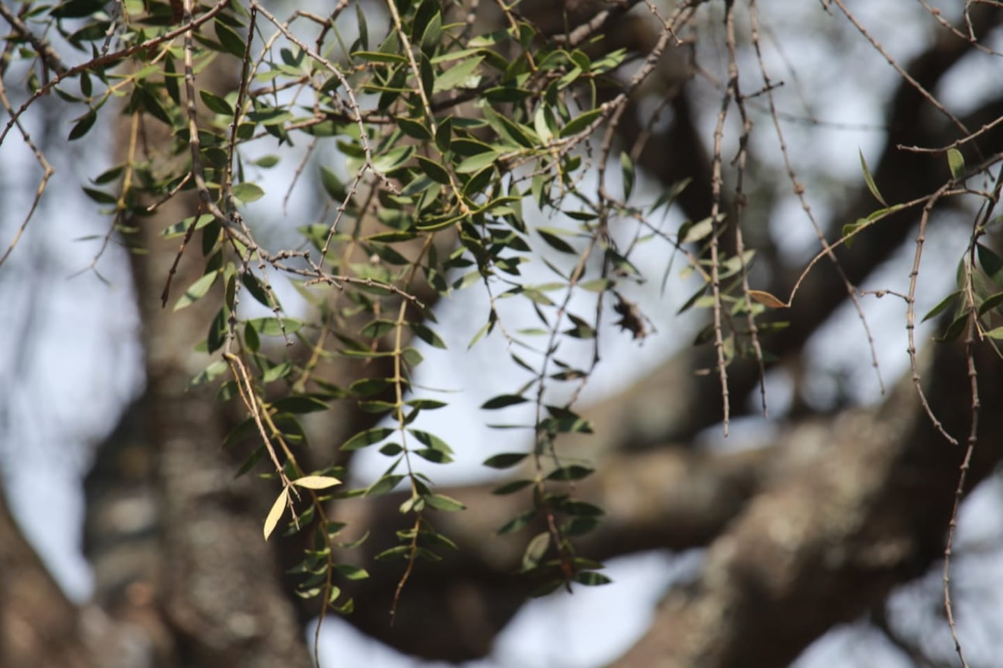 El estudio detalla la “gran cantidad de hojas en el suelo, lo que indica un proceso lento de defoliación”, ramas basales sin emisión de hojas nuevas, “opacamiento del follaje por daño en el sistema radicular” y diferencias con otros quebrachos de la zona, que sí muestran brotes y hojas verdes.