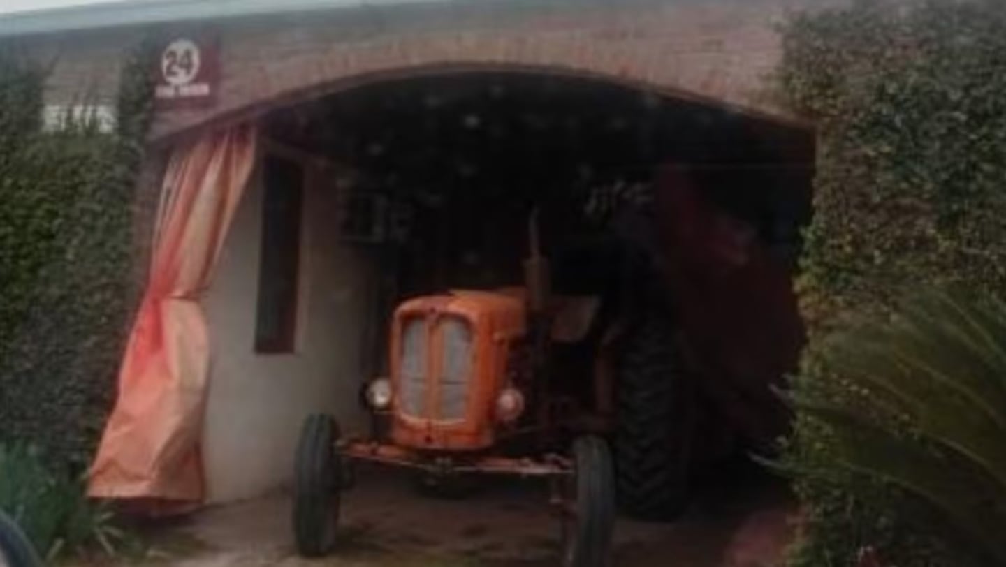 Según medios locales, el vehículo —un tractor utilizado para tareas de campo— quedó estacionado en una de las cocheras de las habitaciones. El peón habría llegado acompañado por una mujer, generando aún más sorpresa entre quienes presenciaron la escena.