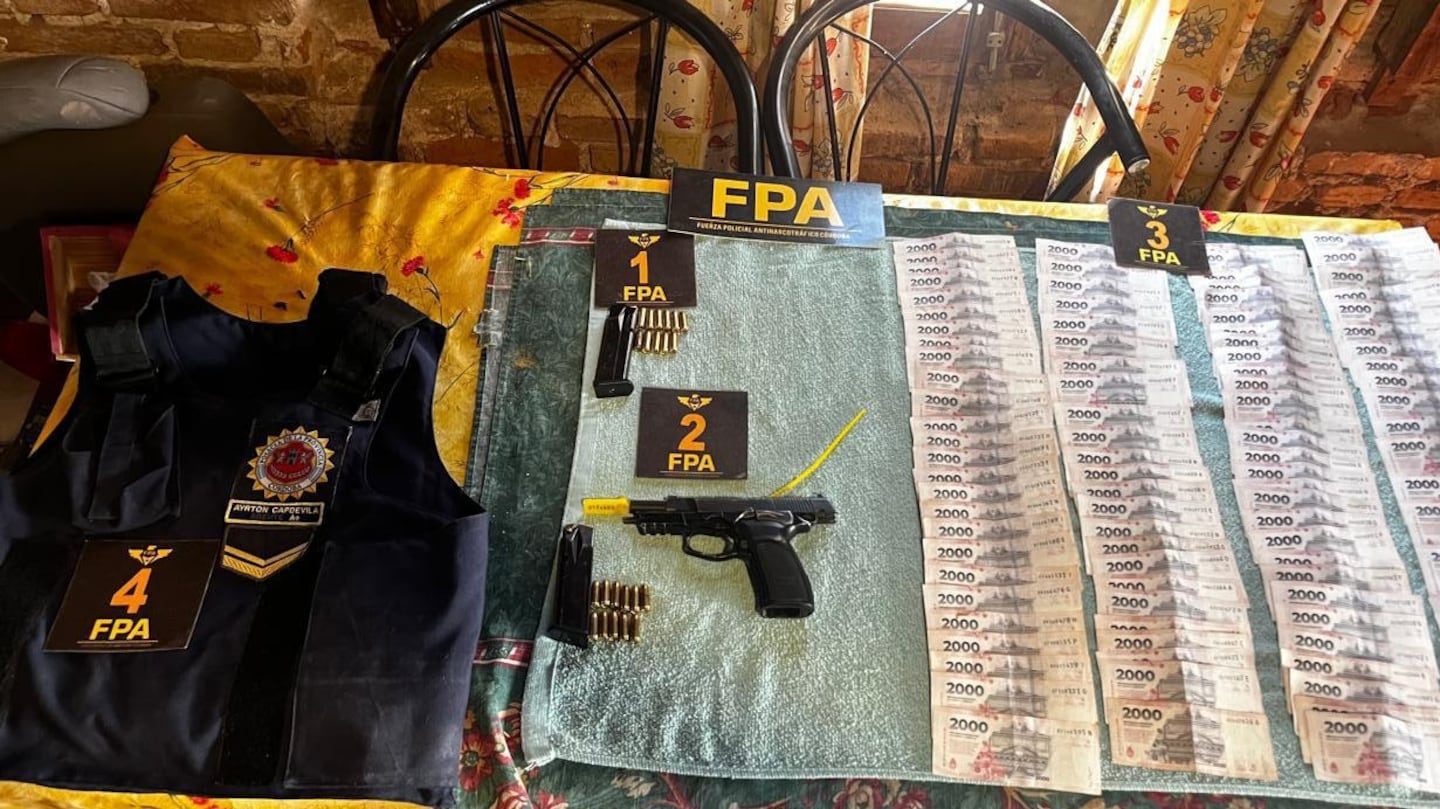 Entre los elementos incautados en los allanamientos se destacan varias dosis de marihuana, dos plantas de cannabis sativa, dinero en efectivo, tres armas de fuego (calibre 9, 22 y 38), 35 municiones, dos cargadores, un chaleco de la Policía de Córdoba, una balanza digital, una motocicleta y una cámara de seguridad.