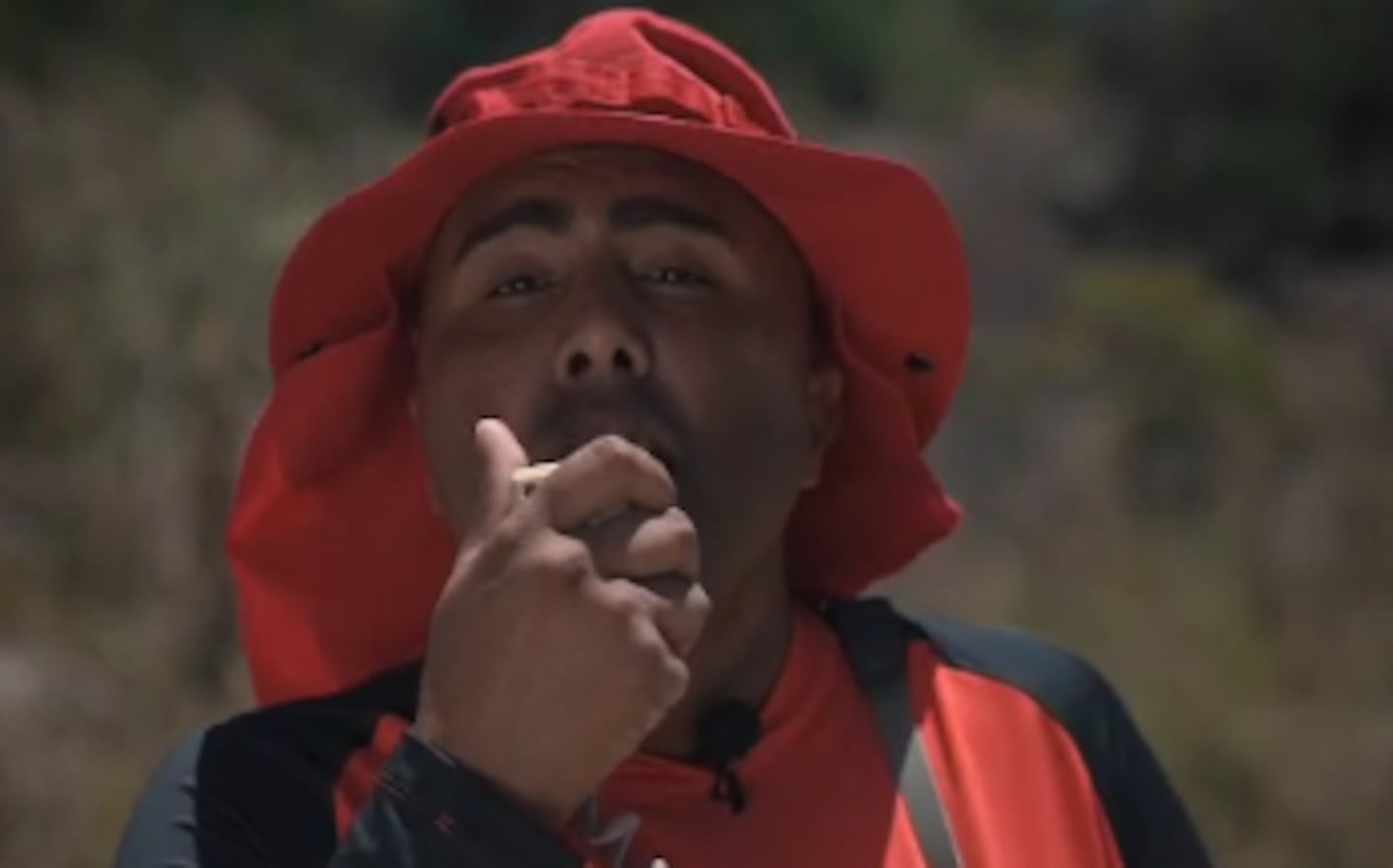 En todo el video utiliza términos bien de Córdoba para alertar sobre infracciones, accidentes y recaudos. Criollitos y chichonazo son las que más se destacan en escenas con turistas en el río o en un puesto de Caminera.
