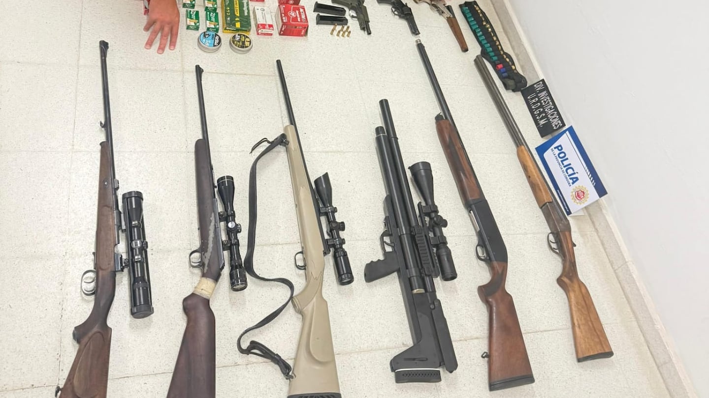 Entre los elementos incautados se encuentran una carabina de repetición calibre 30, una escopeta de doble caño, un revólver calibre 22, una pistola semiautomática calibre 9 milímetros, un pistolón calibre 32, un fusil calibre 30-06, y otra carabina calibre 22, junto con otros elementos de interés para la investigación.