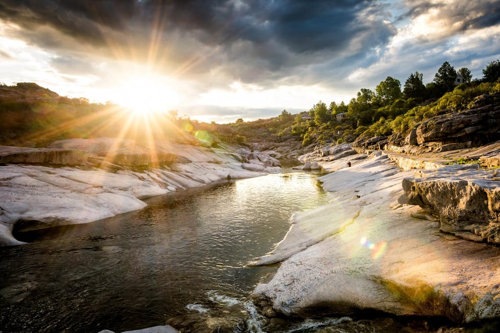 Durante la tarde del domingo, varios turistas quedaron atrapados en el balneario La Toma, sobre el río de Mina Clavero, luego de que una creciente repentina modificara por completo las condiciones del lugar.