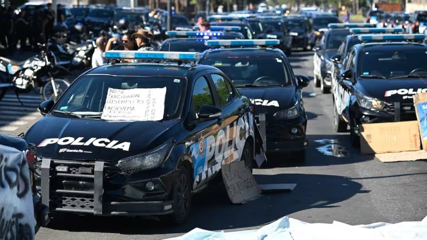 La protesta también tuvo réplicas en la capital provincial. En la ciudad de Santa Fe, móviles policiales rodearon la Casa de Gobierno, evidenciando que el malestar se extendió más allá de Rosario.