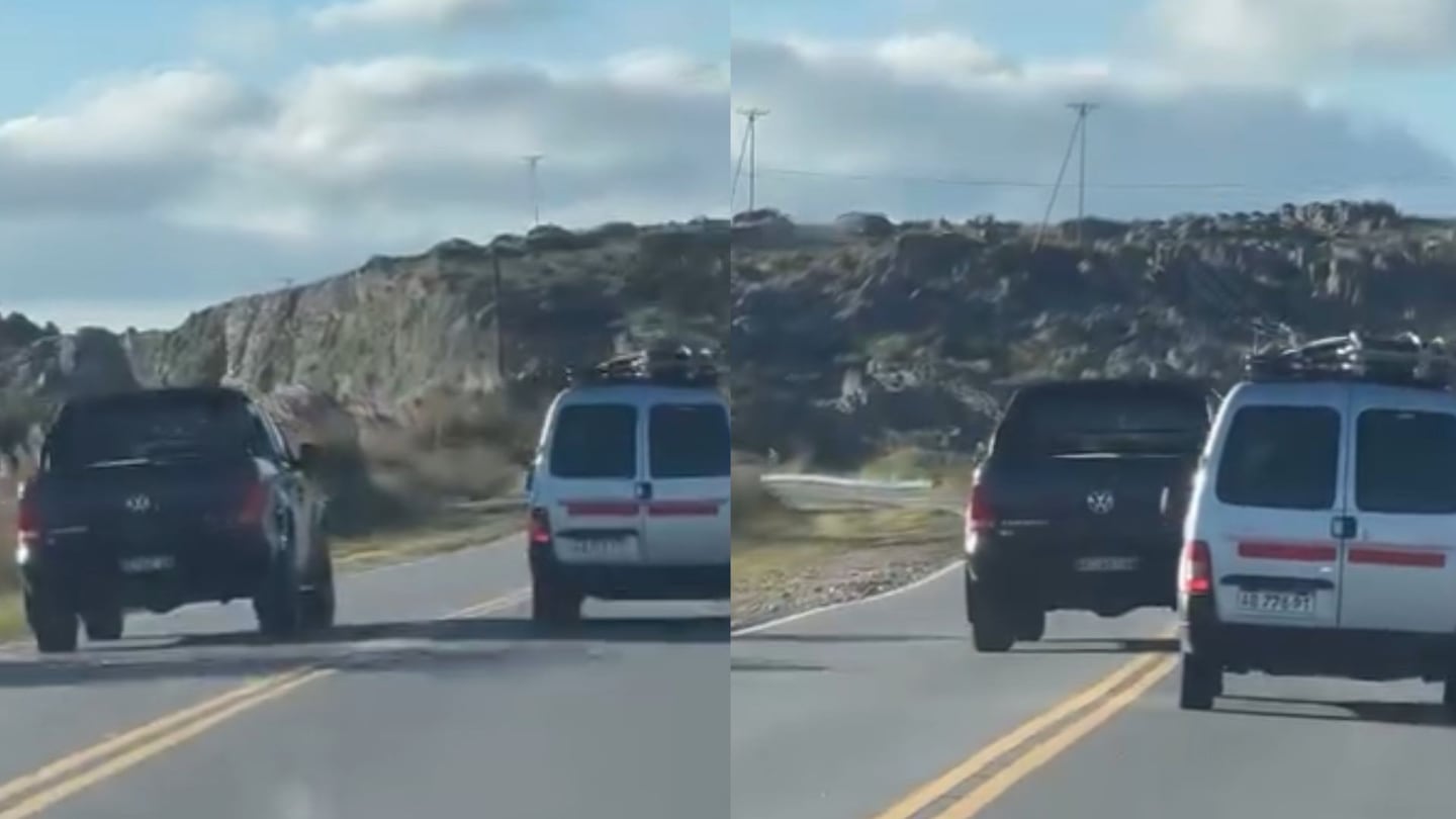 El registro fue realizado por los pasajeros de otro vehículo que circulaba por la ruta. En el clip se observa con claridad cómo la camioneta de mayor tamaño sobrepasa a un utilitario, pese a la prohibición en ese tramo.