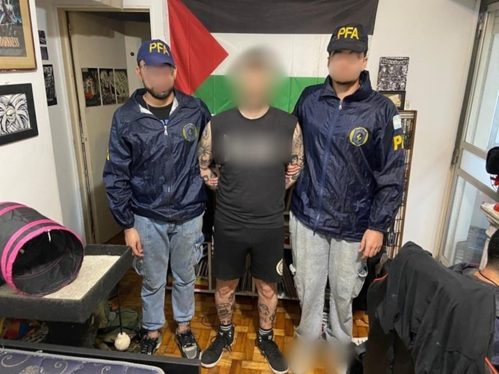 Entre los objetos que llamaron la atención de los investigadores había doce pines con ilustraciones que incluían amenazas contra el presidente Javier Milei y otros funcionarios nacionales. El detenido quedó a disposición de la Justicia mientras avanza la causa.