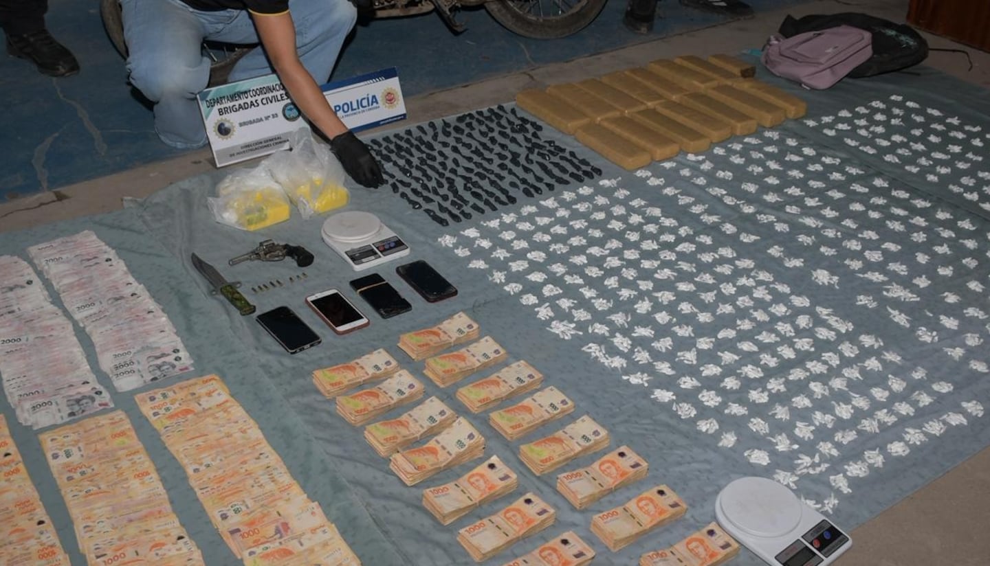 También secuestraron un revólver calibre 22 con cartuchos y vainas, un arma blanca, teléfonos celulares, una suma superior a 4 millones de pesos, una motocicleta con pedido judicial y otros elementos vinculados a la causa.
