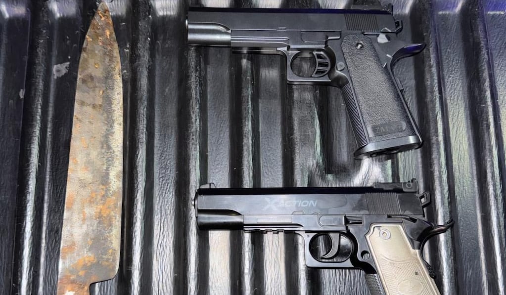 Tras el procedimiento, los efectivos ingresaron a la habitación donde se alojaba el agresor y secuestraron dos réplicas de arma de fuego tipo pistolas 9 mm.