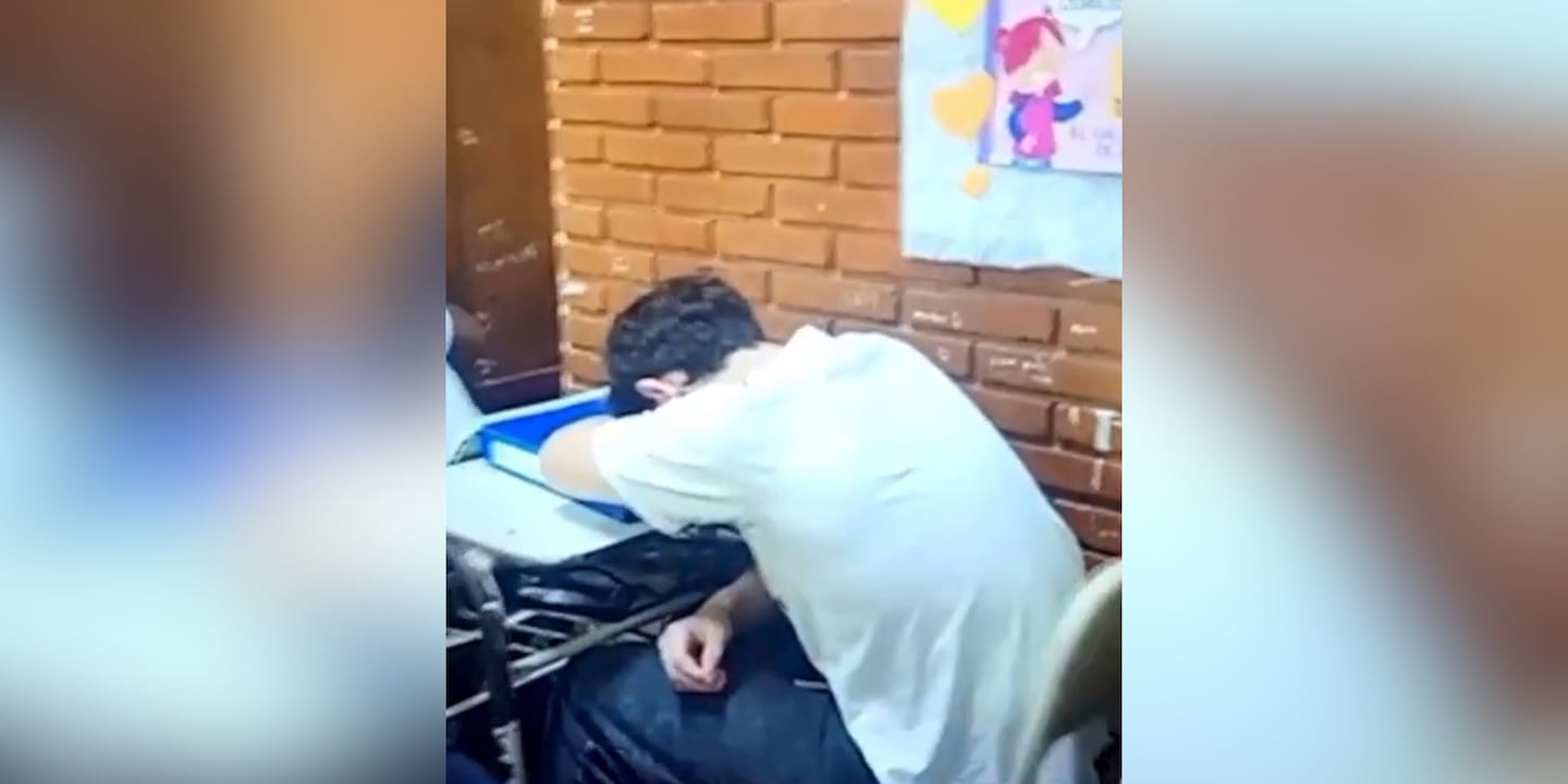El video fue difundido por A24 y se observa al joven sentado en su banco, con la cabeza apoyada sobre el brazo. Mientras tanto, otros estudiantes le patean la silla y lo molestan.