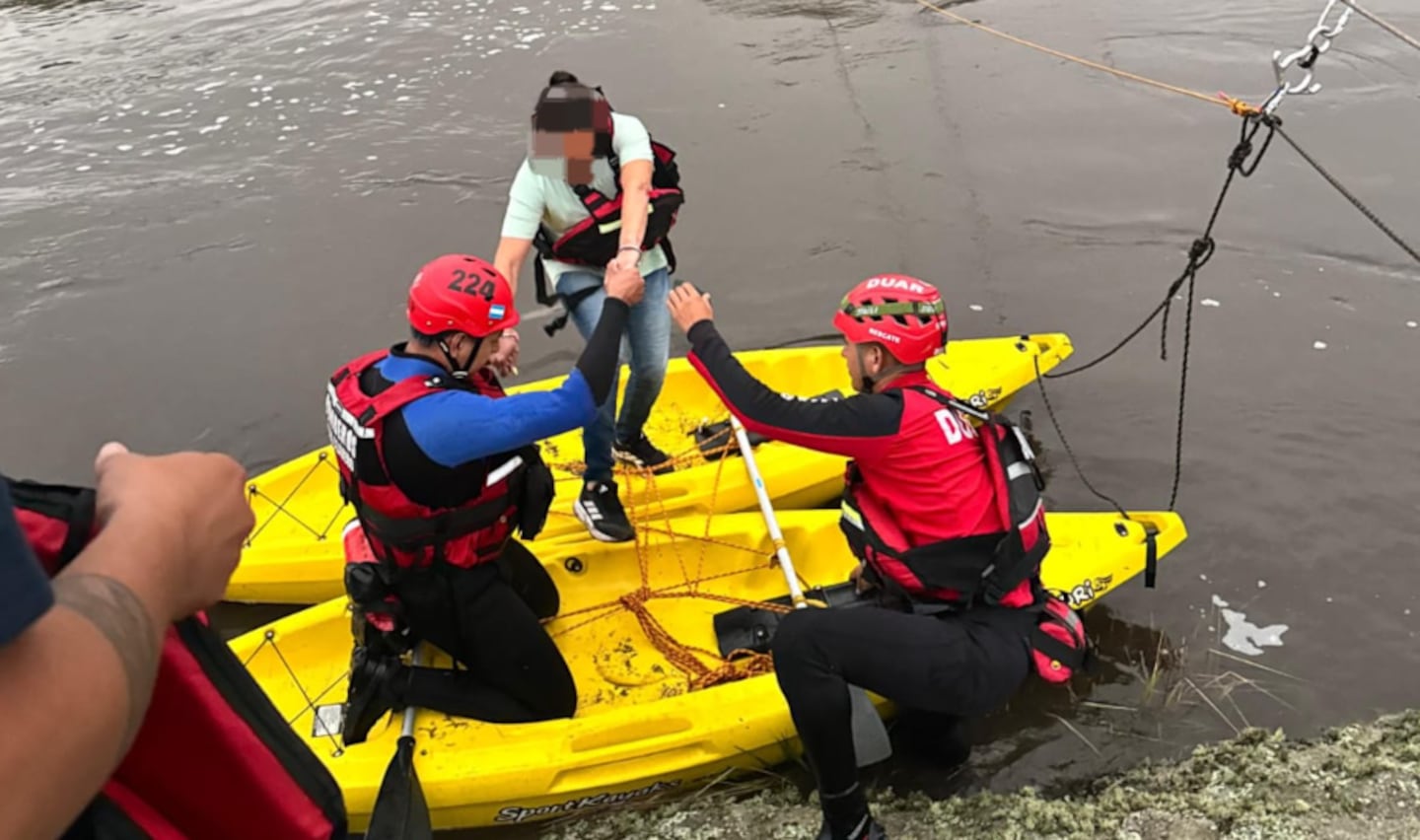 En total, fueron rescatadas siete personas: tres maestras, tres estudiantes de la escuela Ceferino Namuncurá y un hombre. No podían regresar debido al aumento del caudal.