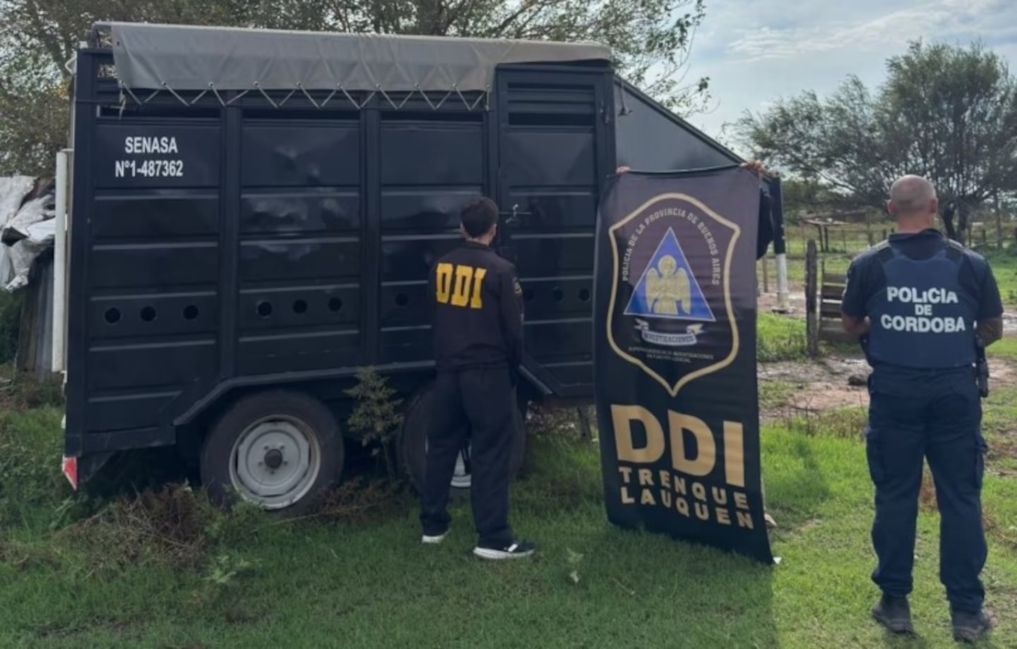En el marco de la investigación, la DDI de Trenque Lauquen realizó un allanamiento en Colonia Bismarck, al sur de Córdoba, donde secuestraron una camioneta y un tráiler que habrían sido utilizados para trasladar los animales.