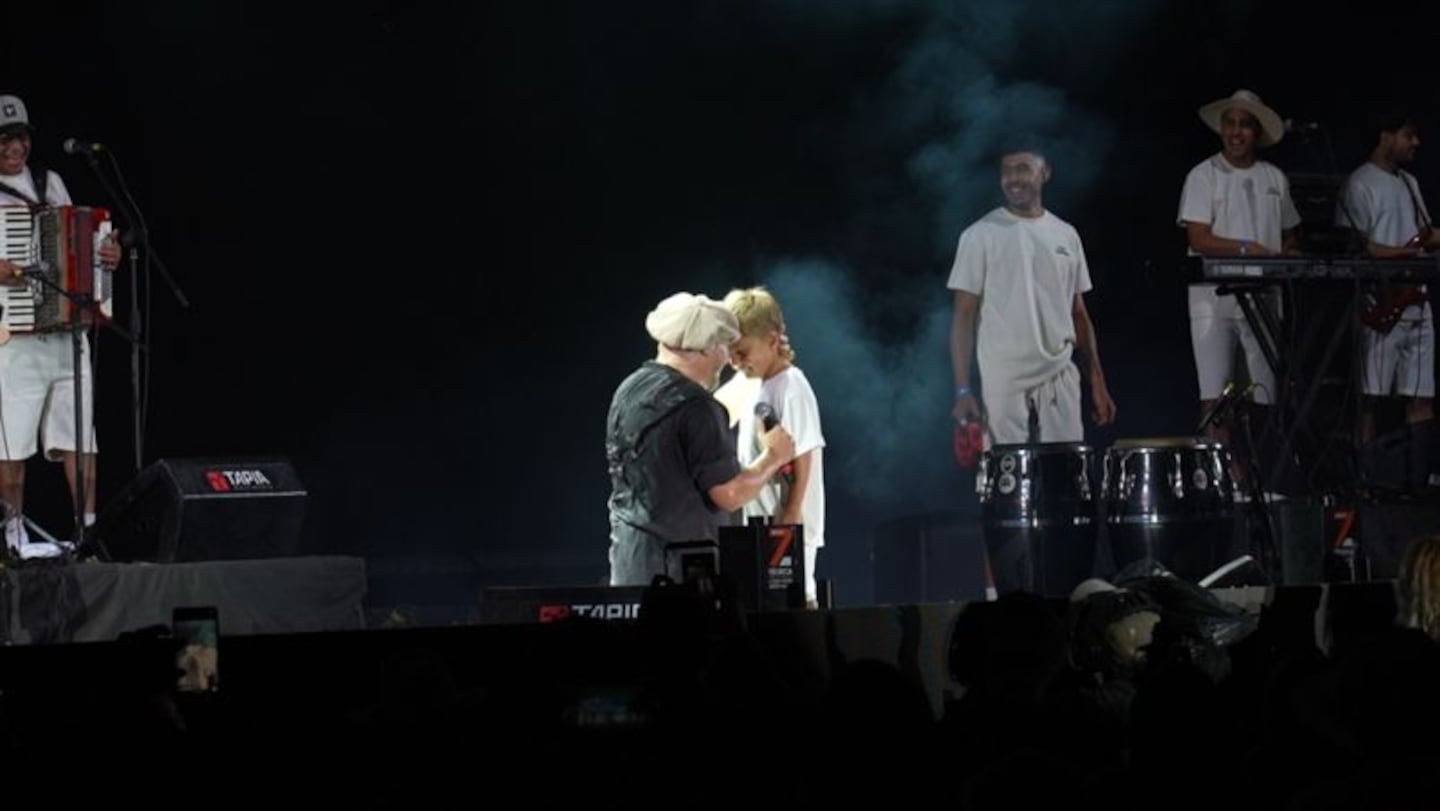 “Es un orgullo impresionante, lo más lindo que me puede pasar en la vida. Hoy me acompaña mi hijo Máximo Córdoba en el escenario tocando, ya de a poquito queriendo cantar. Es lo más lindo que me puede pasar”, expresó Damián, visiblemente emocionado, mientras abrazaba a su hijo frente a una multitud que no paró de aplaudir.