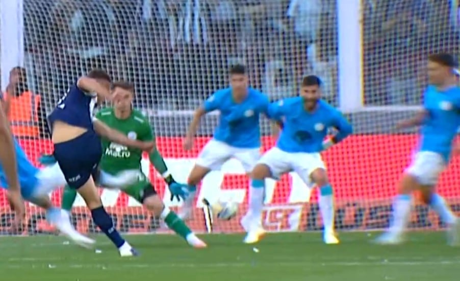 El extremo remató con la parte externa del pie derecho y la pelota salió apenas desviada del palo derecho de Thiago Cardozo.