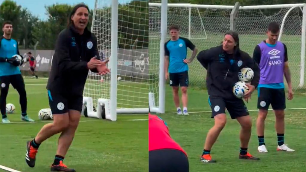 Con arengas intensas, indicaciones constantes y ademanes efusivos, el exarquero supervisó los trabajos de un partido en espacios reducidos, elemento fundamental en un entrenamiento de fútbol profesional.