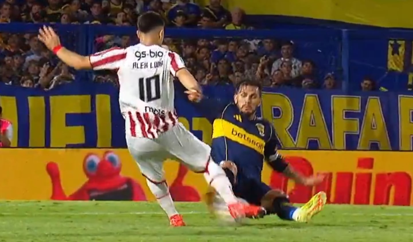 Corrían 25 minutos del segundo tiempo cuando Luna y Paredes fueron a disputar una pelota cerca de la medialuna del área de Boca. Con el marcador 2 a 0 a su favor, el campeón del mundo se tiró con los dos pies para adelante y trabó la pelota al mismo tiempo que el 10 glorioso.