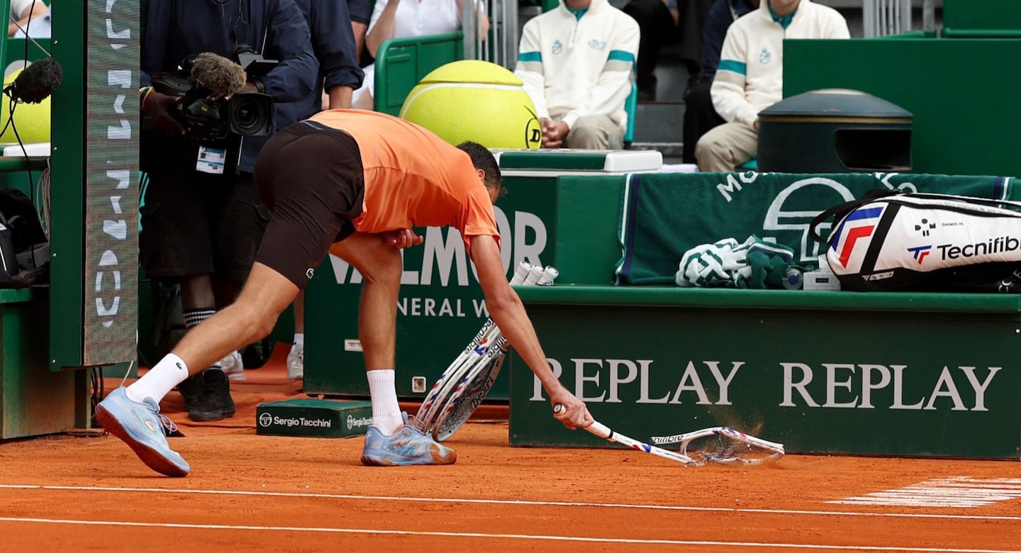 Durante casi un minuto, el tenista golpeó una y otra vez la raqueta contra el polvo de ladrillo —al menos seis veces— ante la mirada del juez, su rival y el público.