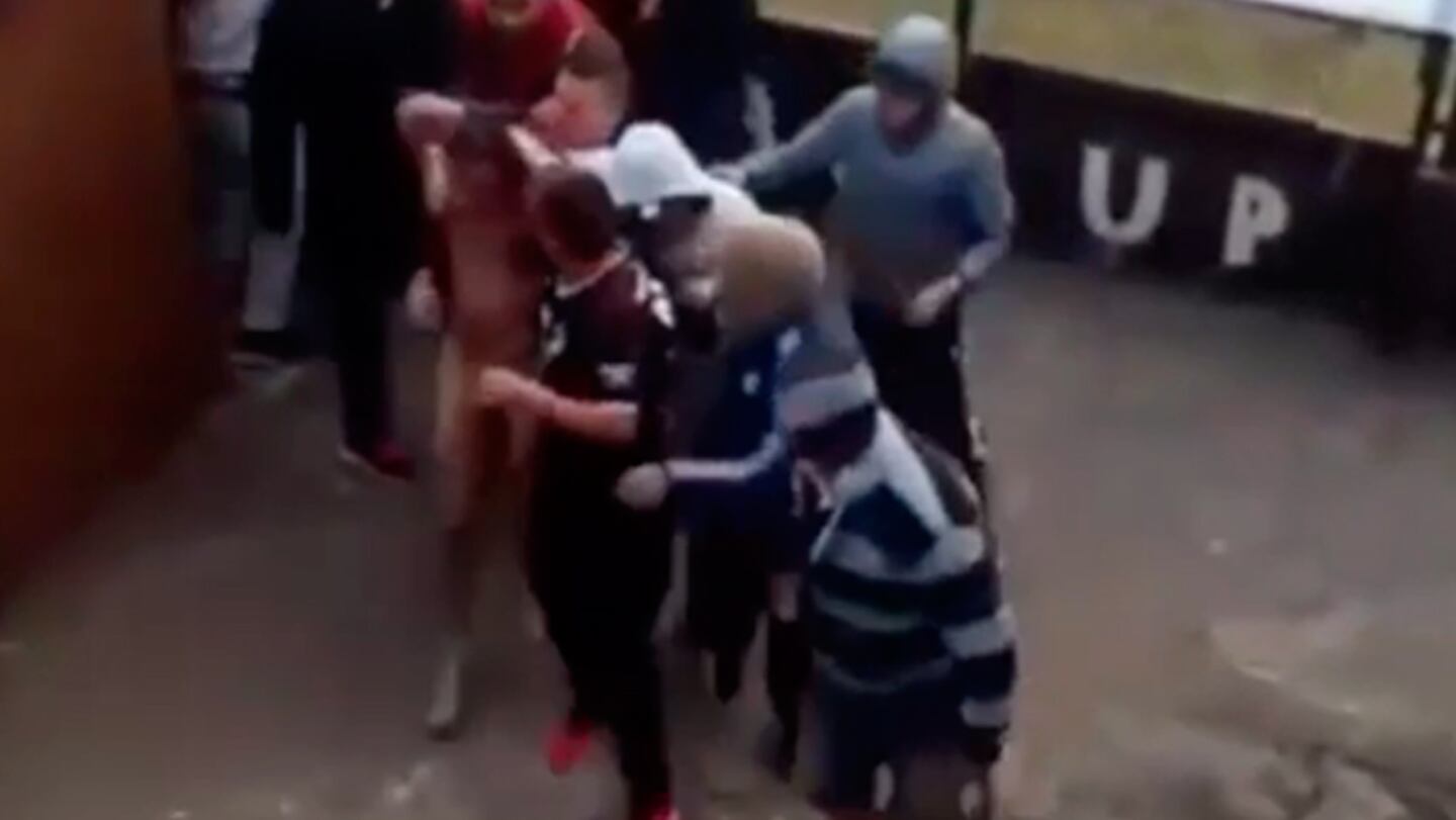 El ataque no terminó ahí, porque lo desnudaron en plena popular, tiraron su ropa al campo de juego y lo sacaron del estadio.