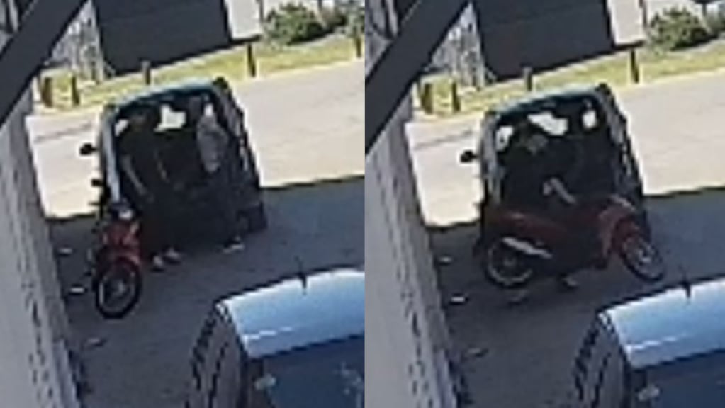 Mientras un cómplice estaba al volante, otros dos delincuentes levantaron la moto y la metieron en el auto. Unos auténticos “utilichoros”.