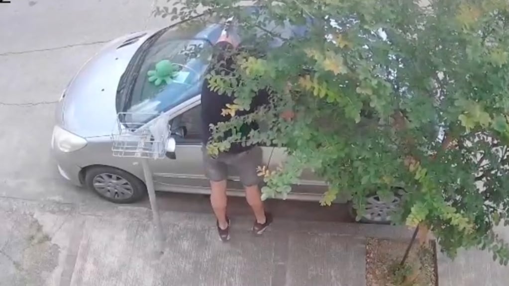Según se puede ver en las imágenes captadas por una cámara de seguridad, el hombre se acercó al auto con una especie de destornillador con el que hizo palanca para levantar el cristal. En menos de 40 segundos, logró su cometido y escapó rápidamente del lugar ubicado en el límite entre los barrios Observatorio y Cupani.