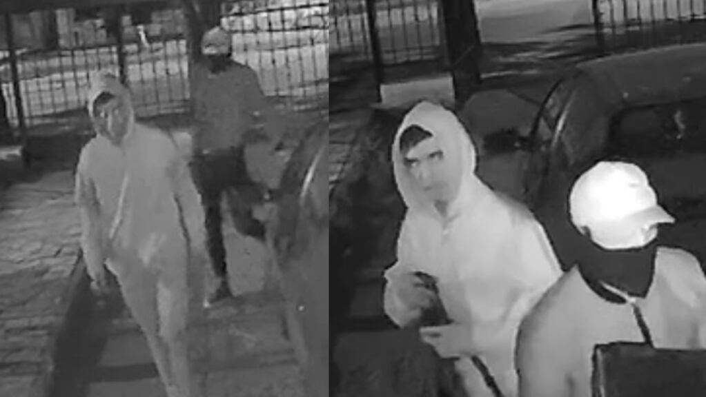 En las imágenes se vio a tres delincuentes tapados con capuchas entrando en el jardín de la casa. Mientras uno abrió el portón, los otros dos sacaron las motos para huir con total impunidad mientras un perro los corría.