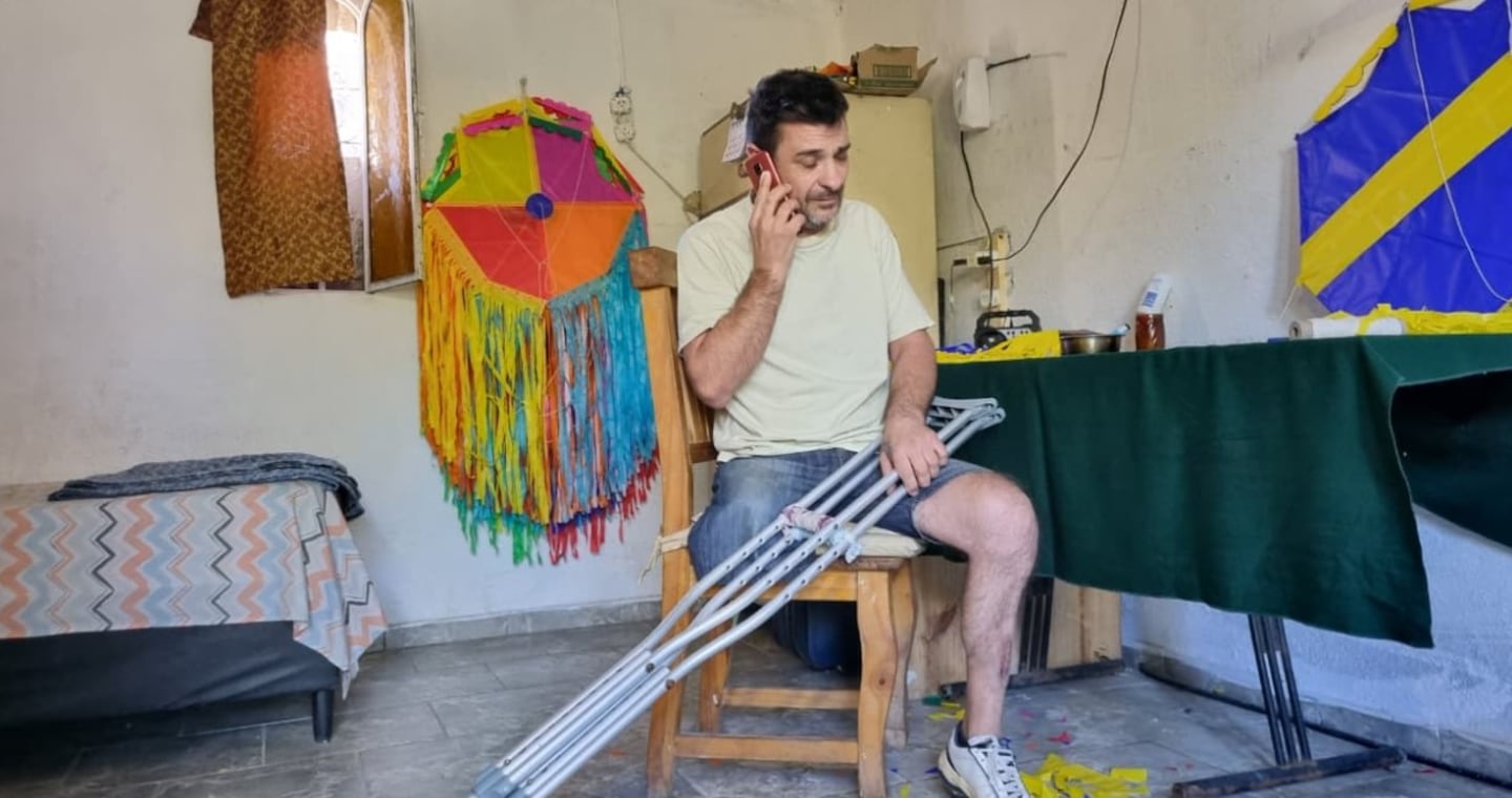 Martín Moya sufrió un accidente de trabajo en el año 2000 y le amputaron su pierna. Hace 25 años que vive con prótesis y muletas y se la rebusca para trabajar fabricando barriletes artesanales ya que nunca más pudo tener un trabajo formal. El sábado fue víctima de un lamentable robo que le arrebató lo más importante que tiene: su pierna ortopédica.