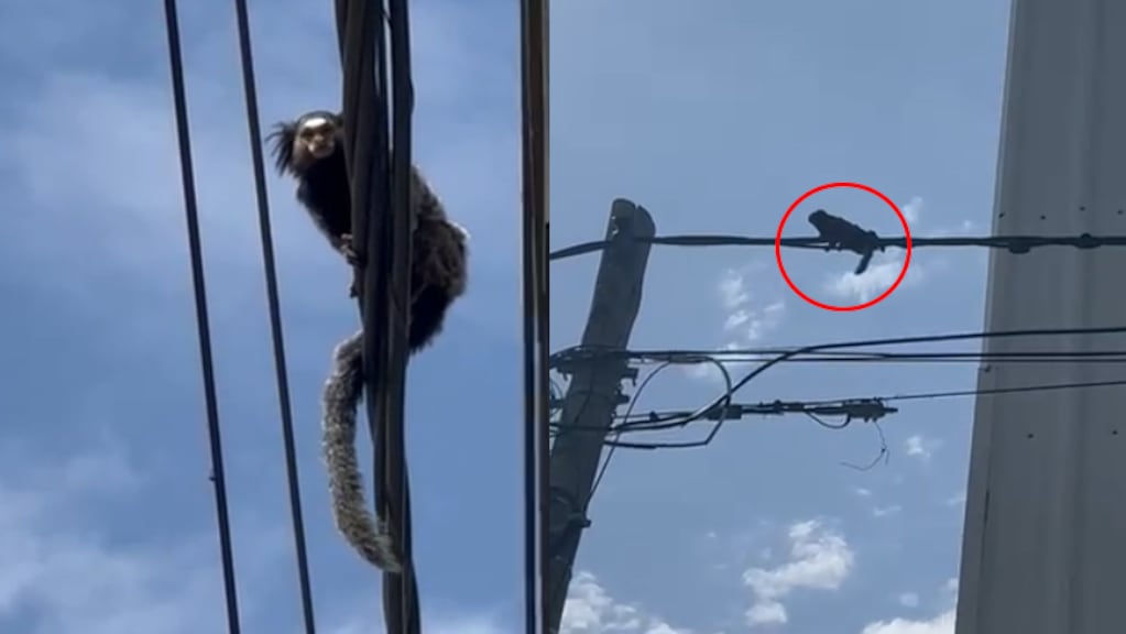 “Se cruzaba por la calle, trepado y después enfiló para una casa”, contó una vecina a ElDoce.tv. En las imágenes de los videos grabados se ve al monito colgado, desenvolviéndose con total tranquilidad en las alturas.