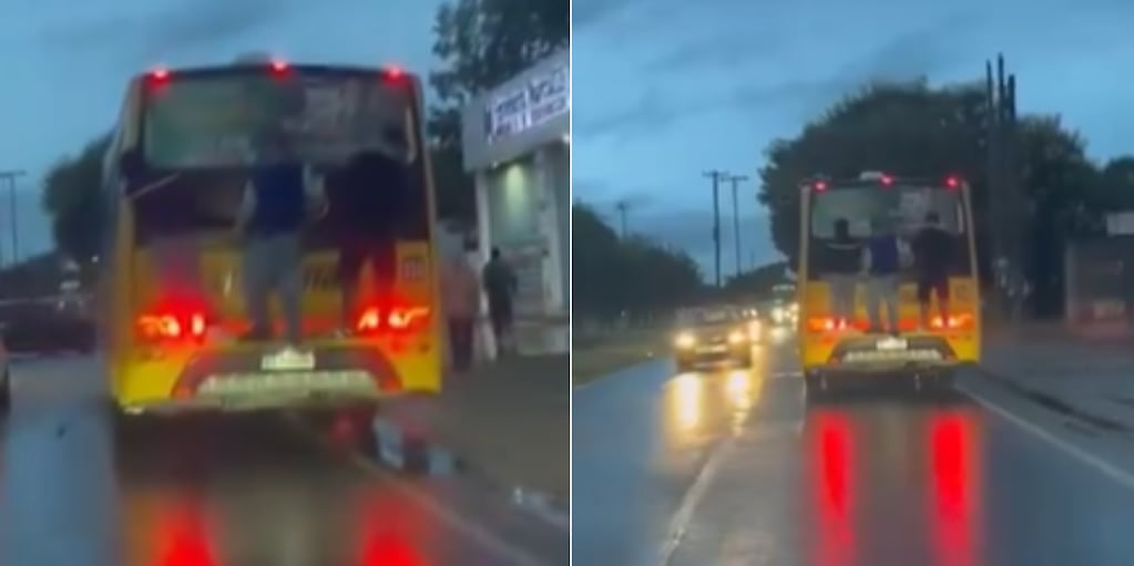 La mañana lluviosa del martes dejó una situación tan llamativa como peligrosa en el extremo oeste de la ciudad de Córdoba. Una mujer grabó a tres adolescentes que viajaban colgados de la parte trasera de un colectivo de la empresa Coniferal.