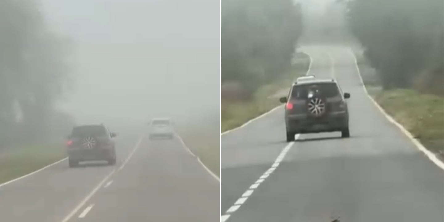 En las imágenes se observa al vehículo circulando en contramano con la niebla que impedía tener buena visibilidad, pese a tener su carril disponible. Solo regresó a su mano cuando apareció un auto de frente.