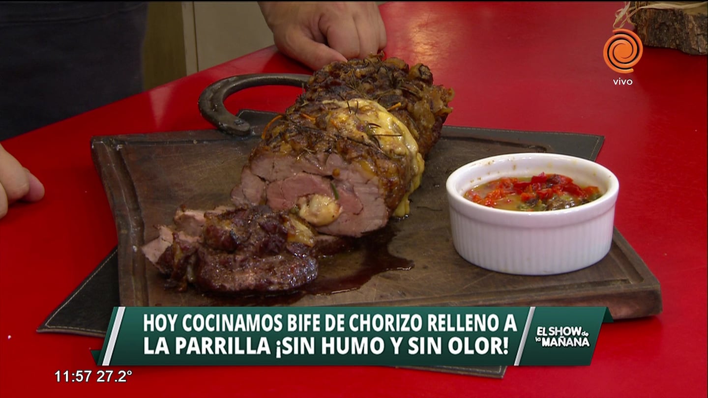 Bife de chorizo relleno a la parrilla