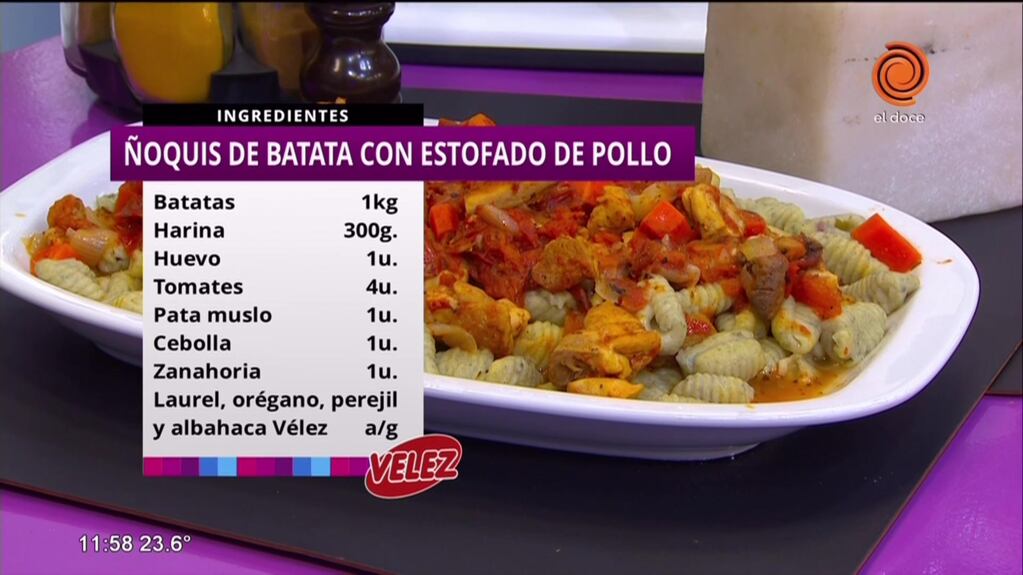 Ñoquis de batata con estofado de pollo