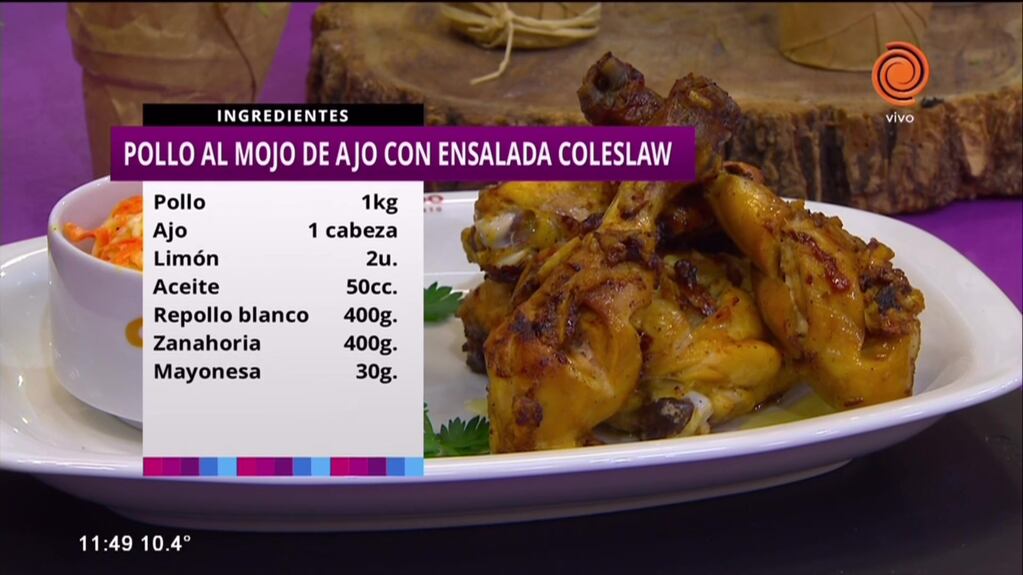 Pollo al mojo de ajo con ensalada Coleslaw