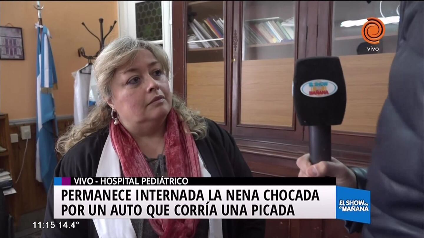 En el Hospital Pediátrico permanece internada la nena que resultó herida tras el choque de un auto que corría picadas. De acuerdo al relato de los progenitores, la menor dormía en una camioneta mientras recolectaban cartones en la Av. Rafael Nuñez y salió despedida del vehículo después del impacto. La Dra. Silvia Ferreyra, directora del nosocomio, explica el caso.