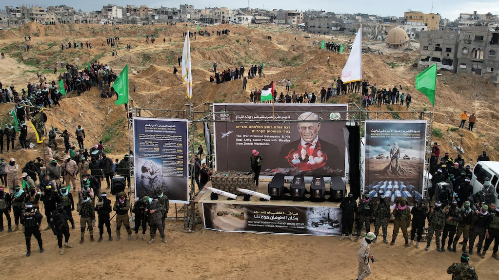 + VIDEO: el show que montó Hamas para entregar los cuerpos a Israel: