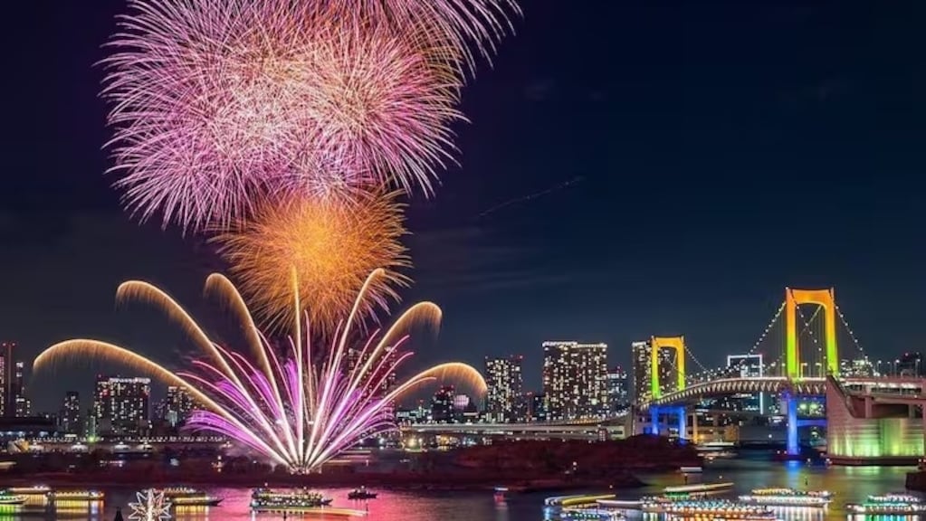 En orden cronológico, otra de las grandes ciudades que recibió con todo el 2026 fue Tokio. La capital de Japón también preparó un festejo a lo grande con un impresionante show de fuegos artificiales.