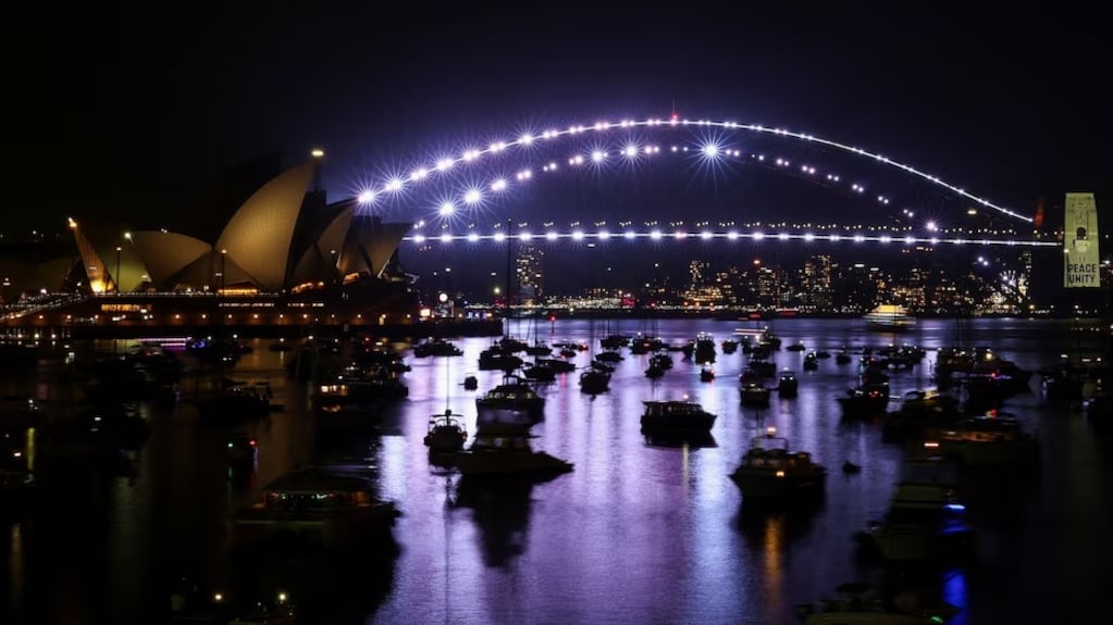 Durante ese minuto de silencio, el Puente de la Bahía de Sídney se iluminó de blanco y una menorá fue proyectada sobre sus pilares, como símbolo de solidaridad con la comunidad judía. La imagen impactó a todos los presentes y se viralizó rápidamente en redes sociales.