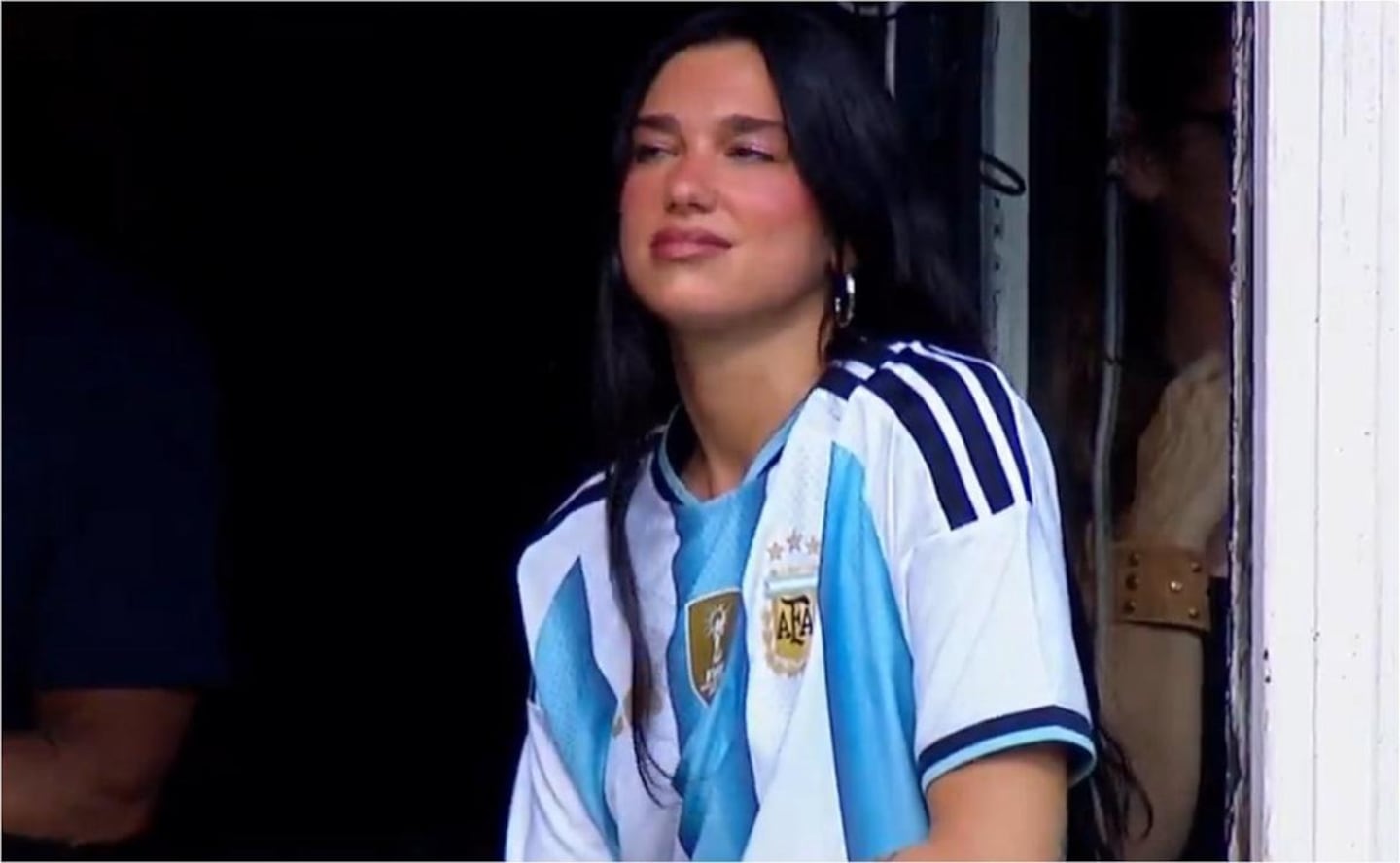 Desde el palco número cinco del estadio Alberto J. Armando, fue vista con una camiseta de la Selección argentina, gesto que rápidamente desató furor.