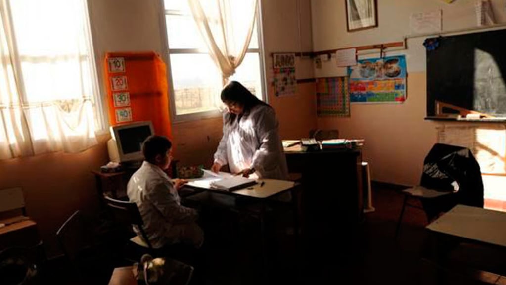 El alumno quedó solo junto a su maestra, Alejandra Ramos, hace dos meses cuando la compañerita que empezó este año con él se cambió de primaria. La falta de chicos se debe a que vive poca gente en la zona y a esto se suma el problema de las inundaciones, lo que hizo que los pocos que vivían allí se mudaran.