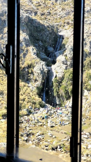 Llegando al refugio, se ingresa a otra quebrada con vistas al Cerro Bayo y al Champaquí. La cascada Elba, por supuesto, también es un cuadro viviente para fotografiar mate mediante.