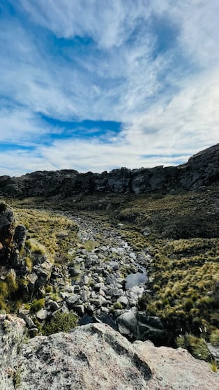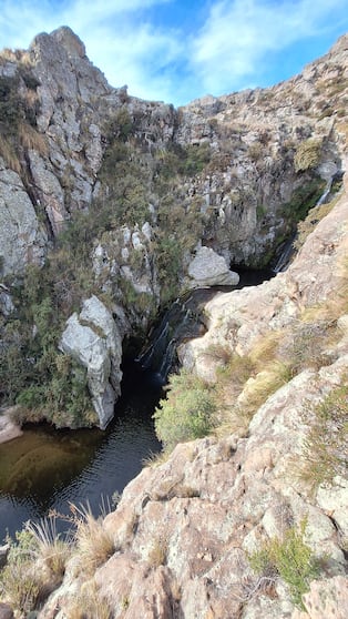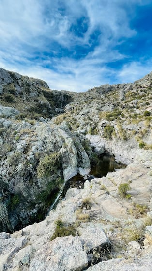 Aunque la idea es desconectar entre la naturaleza y el silencio, sacar fotos de spots instagrameables es casi inevitable. Buena parte del trekking se realiza sobre una quebrada que tiene bien de frente el filo de las Sierras Grandes y el valle de Traslasierra. Sí: la montaña de un lado y la inmensa planicie del otro.