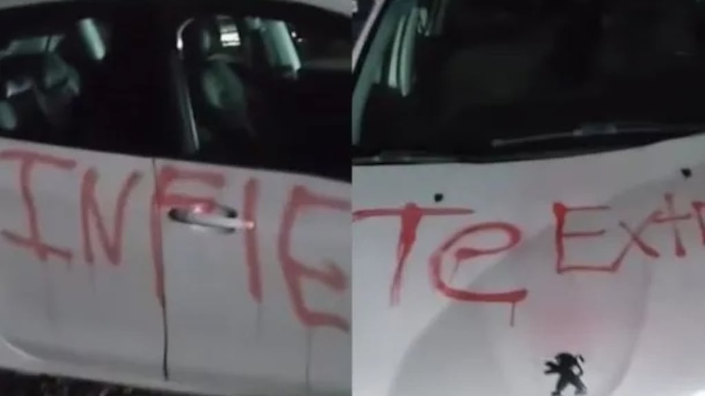 “Te extraño”, “Volvé” e “Infiel” fueron algunas de las frases que cubrían el vehículo, escritas con pintura roja y blanca sobre la carrocería y los vidrios. La imagen rápidamente se difundió en redes luego de que una joven que asistía al evento grabara un video y lo subiera a TikTok con la descripción: “Vas a bailar y te encontrás con esto a la salida”.