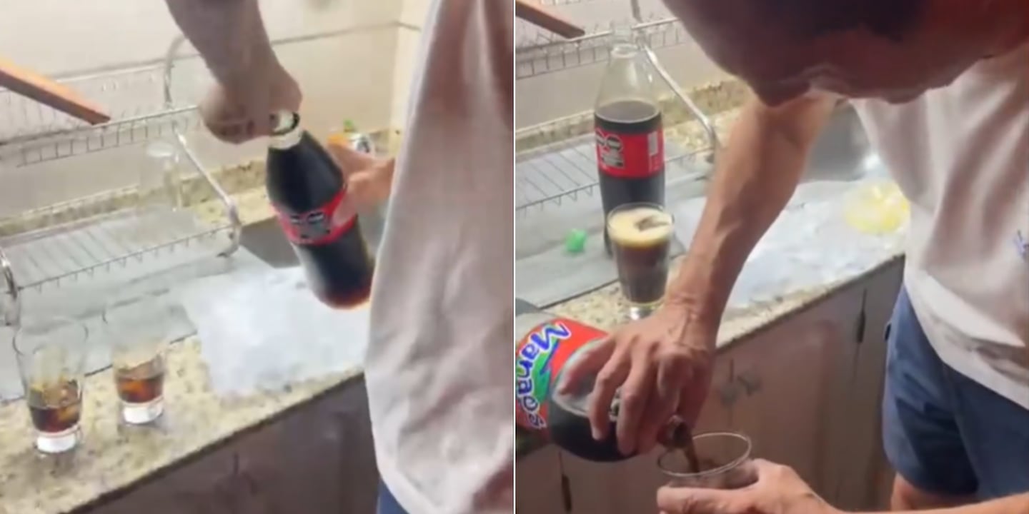 Seguro de su paladar, el hombre señaló que el vaso de la derecha era el preparado con Manaos. Sin embargo, quien había armado los tragos estalló de risa: había elegido el de Coca.