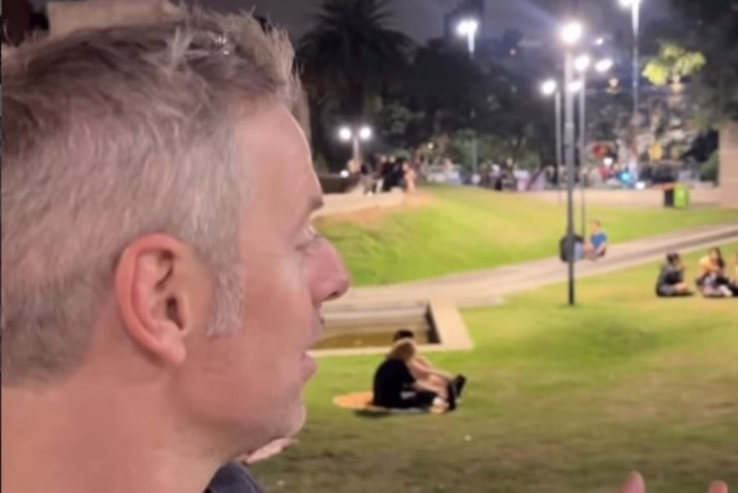 “Este es el gran problema de Argentina”, dice al inicio del video mientras muestra la cantidad de gente en Plaza España. Luego agrega, sorprendido: “No puedo creer, un día jueves y a las 10 de la noche, Plaza España está vibrante, llena de gente”.