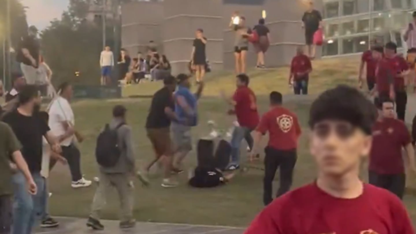 Piñas, patadas y corridas en Plaza España entre libertarios y militantes de izquierda