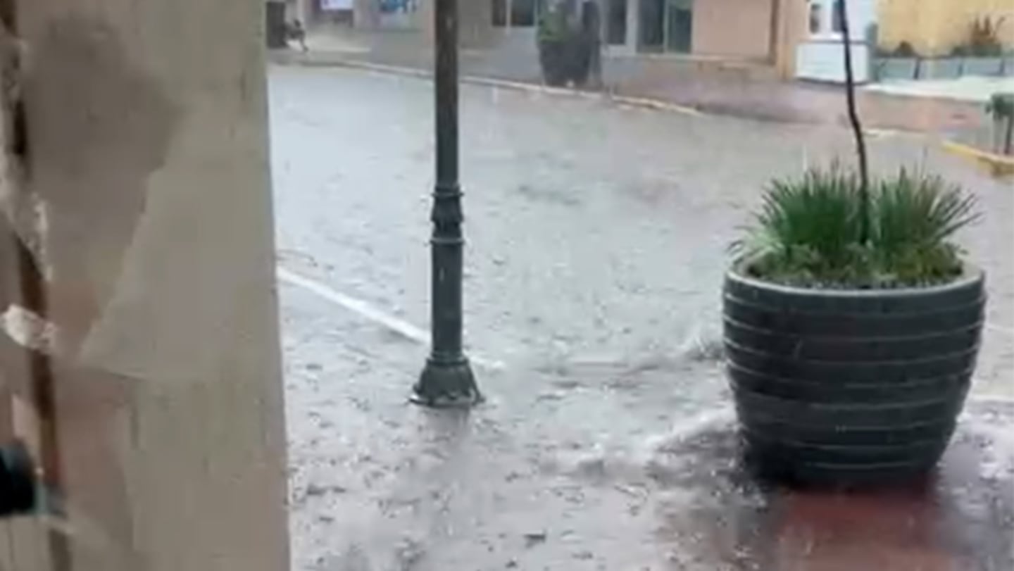En pocos minutos se registró una intensa precipitación que hizo correr abundante agua por las calles del centro de la ciudad. Vecinos grabaron la caída de pequeñas piedras.