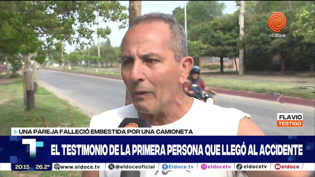 Fue el primero en llegar al lugar del hecho y contó cómo encontró a las víctimas. En Telenoche, aseguró haber notado alcoholizado a Lucas Belén, quien permanece detenido.