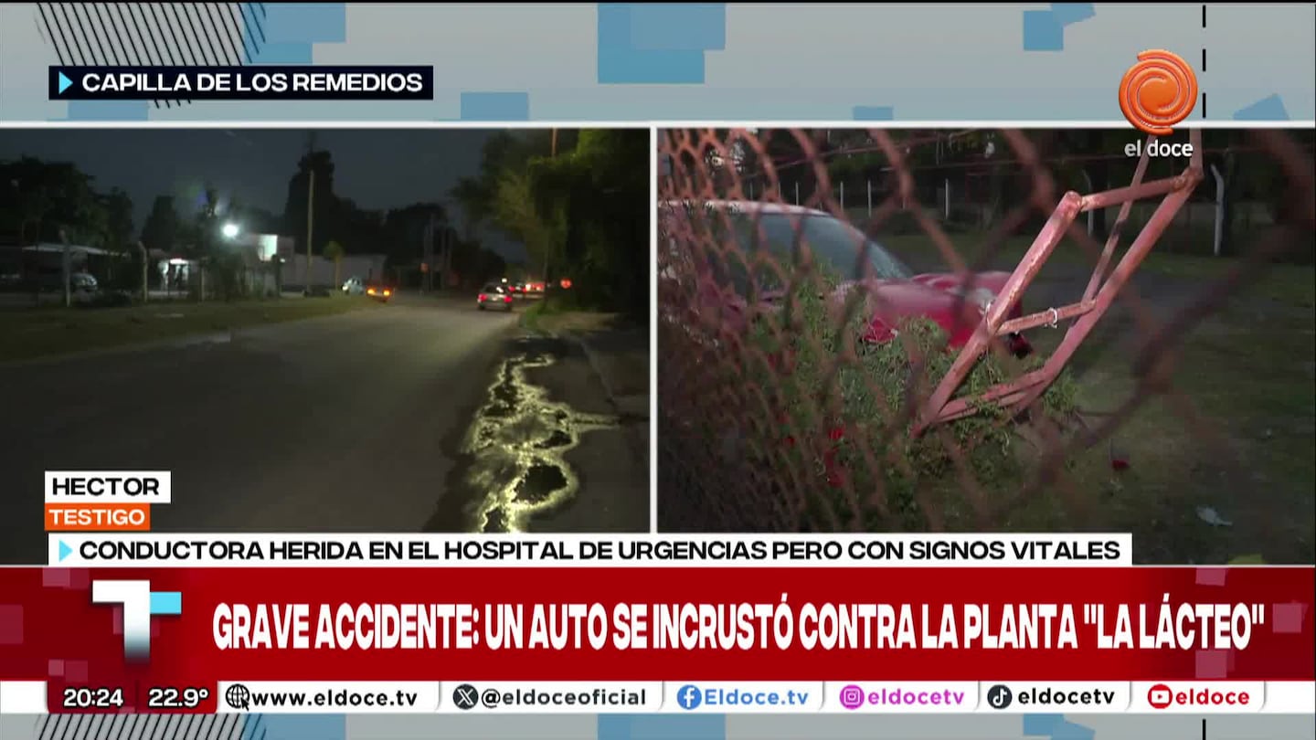 Una conductora de 30 años se incrustó contra la fábrica La Lácteo y debió ser trasladada al Hospital de Urgencias.