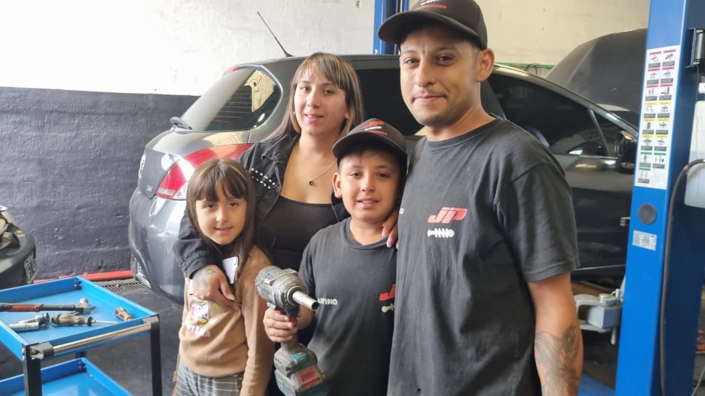 Santino Gómez aprovechó las vacaciones para colaborar en el local familiar de barrio Alto Alberdi. Su pasión por la mecánica asombra a clientes.