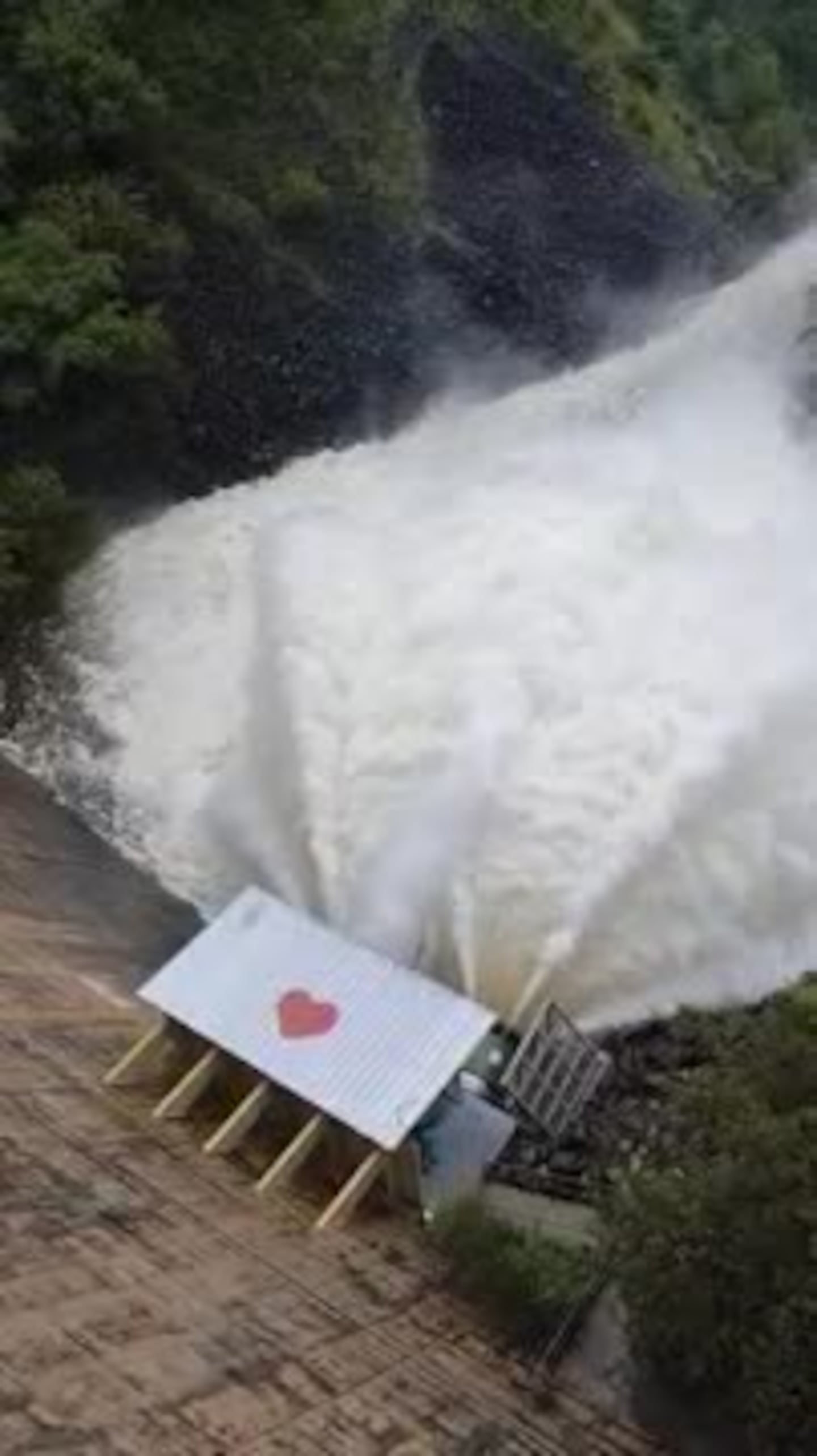 En plenas lluvias, el nivel del embalse superó el vertedero y se habilitó una válvula del dique. El fenómeno volvió a regalar una de las imágenes más llamativas del paisaje cordobés.