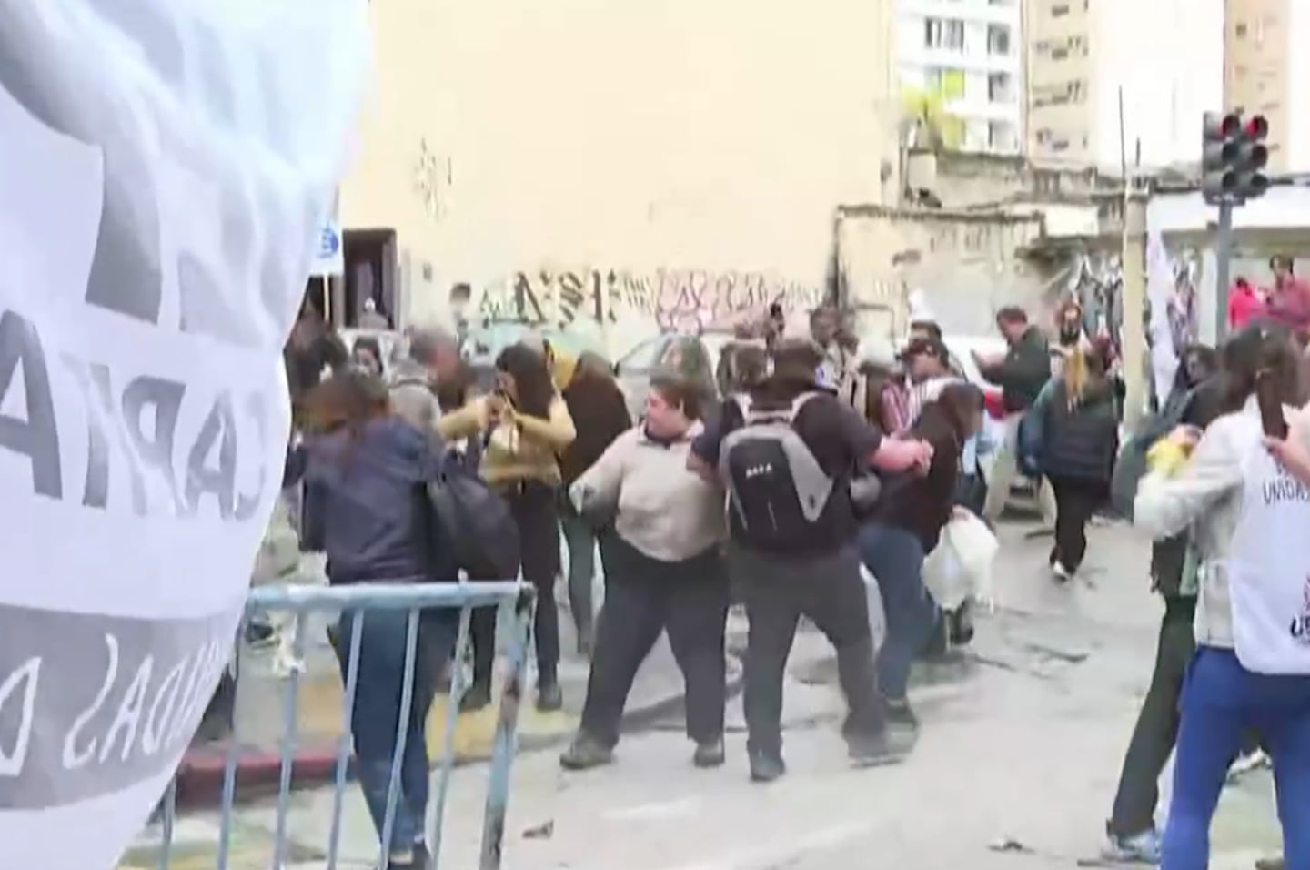 Hubo empujones, gases lacrimógenos y un detenido en medio de la votación de los delegados. La interna gremial y el conflicto con el Gobierno recrudecen el clima.