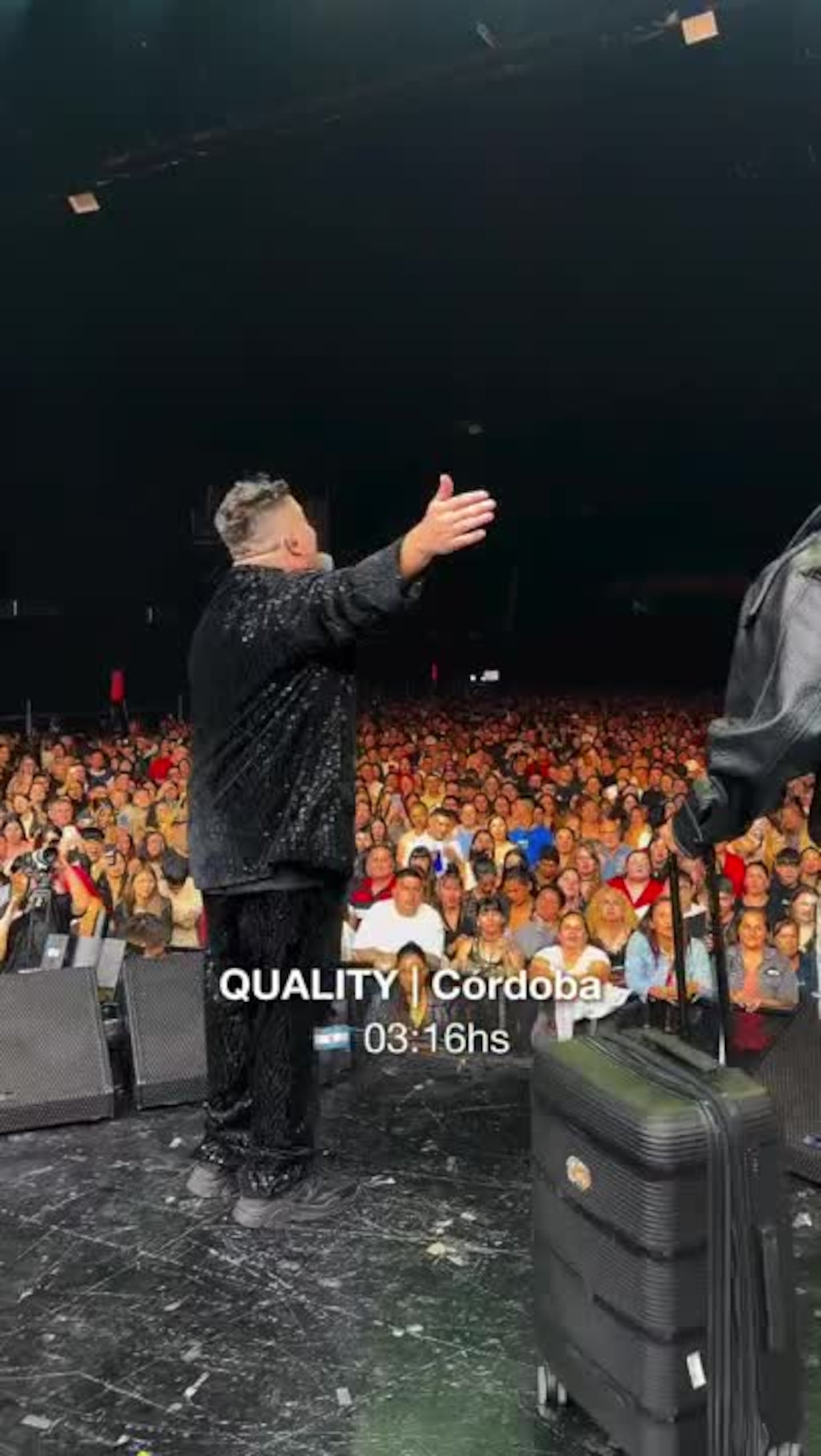 El cantante de Los Caligaris aterrizó pasada la medianoche en Córdoba tras un show en México y se subió al escenario del Quality Arena casi sin escalas para ser parte de los 25 años del Wacho.